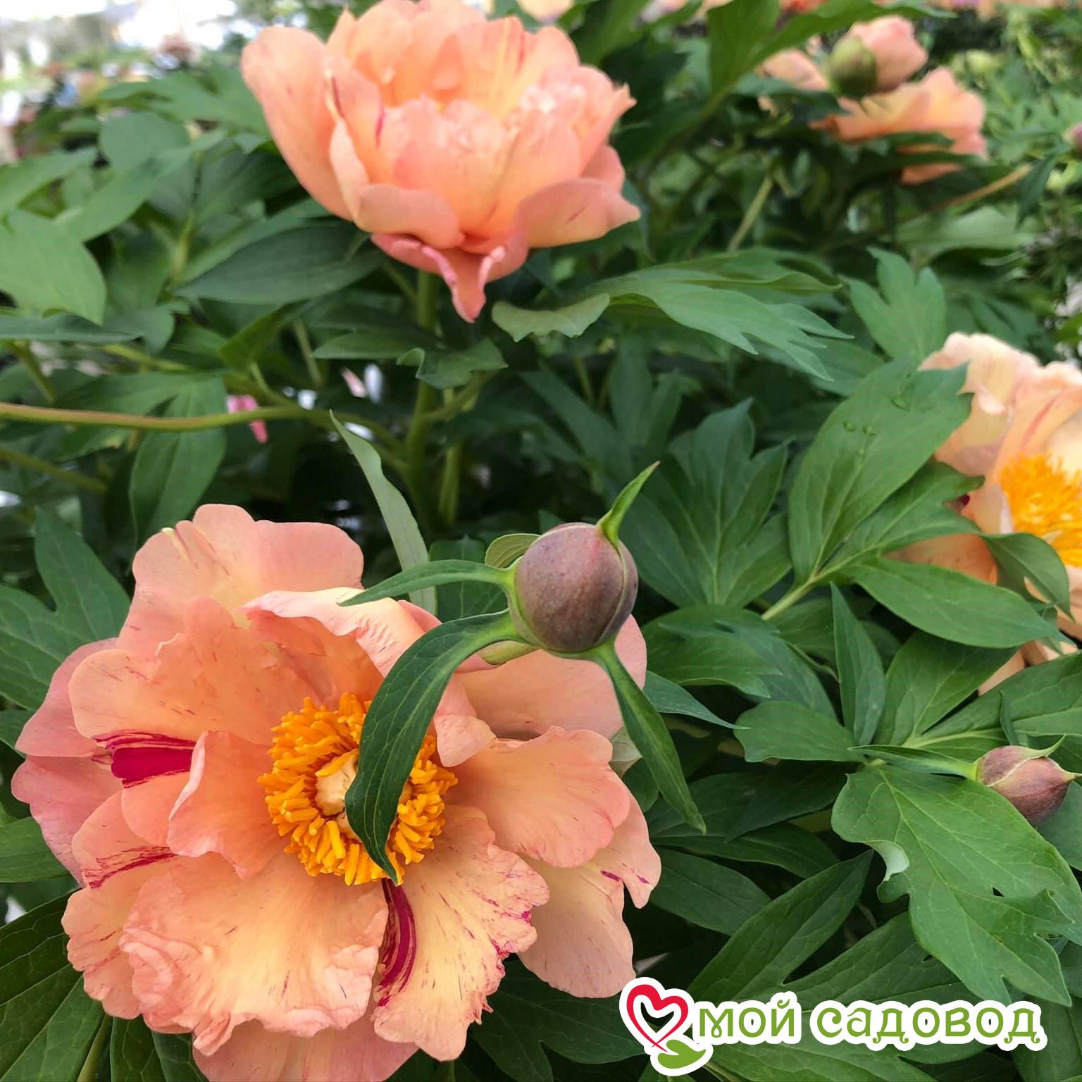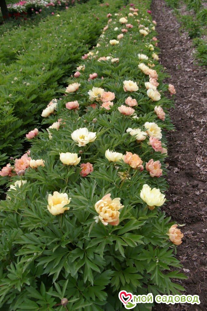 Сорт Сингин Ин Зе Рейн — ИТО-гибрид с полумахровыми крупными очаровательными цветками нежно-жёлтого, оранжевого и розового оттенков. Цветение обильное, но неодновременное, за счёт чего куст выглядит не однотонно, а переливается нежными солнечными красками. Листья крупные, глянцевые тёмно-зелёные. Невероятно красиво смотрится в цветниках, не вытягивая на себя внимание, но задавая настроение всей композиции. Сорт Singing in the Rain отличается отменным здоровьем, не прихотлив и устойчив к вредителям и болезням. Прекрасный сорт для срезки и создания восхитительных букетов. Купить качественные пионы этого великолепного сорта вы можете в нашем питомнике. Место посадки Для посадки пионов понадобится защищенное от ветров место с хорошей освещенностью. Сорта светлой окраски, а также пионы с простыми и полумахровыми цветками можно посадить на частично затеняемом участке, это продлит цветение и защитит цветы от выгорания. Почва для посадки Залог успешного цветения пиона в будущем — это подготовка почвы! 1. Подготовка ямы — 70*70 см на скудных песчанистых и торфянистых почвах — 50*50 см на плодородных, окультуренных почвах. ХРАНЕНИЕ ДО ПОСАДКИ: После получения посылки, рекомендуем вскрыть пакет и осмотреть корневище. Почки должны быть плотные и розового цвета. Так же уделите внимание самому корневищу, все сомнительные, потемневшие, сморщенные части удалите, а места среза обработайте зеленкой или залой. Если почки еще не тронулись в рост, а высаживать в открытый почву рано, советуем Вам хранить корневище в холодильнике, обязательно оставляя его в пакете с торфяной смесью или в коробке под снегом. Если почки успели раскрыться это не критично, сохранить до посадки их так же возможно, высадите корень пиона в большой просторный горшок или в любую другую ёмкость.